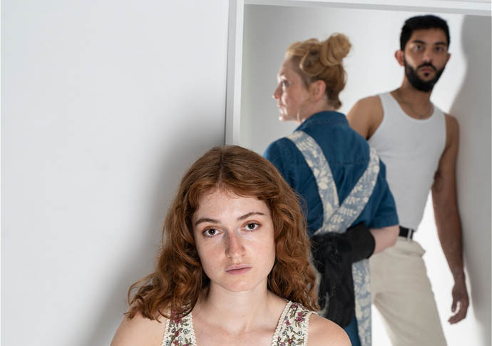 • We are filled with unease from the outset of this evocative promenade performance of Caryl Churchill’s dystopian drama Far Away, staged in the University of Westminster’s cavernous concrete hall. As we’re ushered around the space, our sense of unease deepens across three unsettling scenes. In the first, young Joan (Lorna Dales) confides in her aunt Harper (Lizzie Hopley) that she’s just seen her uncle loading bloody people, including children, into the back of a lorry. In the second, Joan works alongside Todd (Samuel Gosrani) in a factory creating hats for a chilling ceremony. In the final scene, Joan and Todd reunite in Harper’s home as chaos reigns outside. Rebecca McCutcheon’s terrific site-specific production, compelling performances and haunting lighting (Jack Hathaway) and sound (Lucy Anna Harrison) make for an unforgettable experience. Ambika P3, age 14+, 7.30pm, to Aug 23. LP