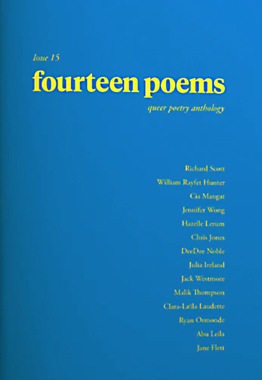 • fourteen poems is a London-based publisher, spotlighting the most exciting LGBTQ+ poets. They publish pamphlets and three anthologies a year. The latest, fourteen poems issue 15, is out now and features poems by Jane Flett, Julia Ireland, Chris Jones, Abu Leila and Jack Westmore.
