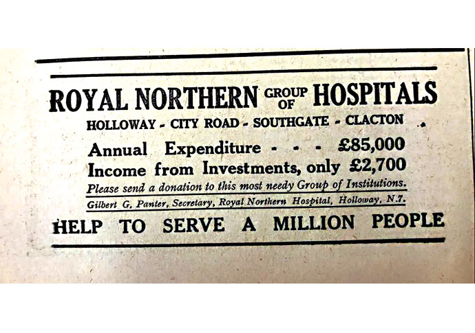 We get an idea of what life was like before the NHS. The Royal Northern Hospitals – in Holloway Road and City Road – tell us they serve more than a million people, they spend £85,000 annually and have an income from investments of £2,700.