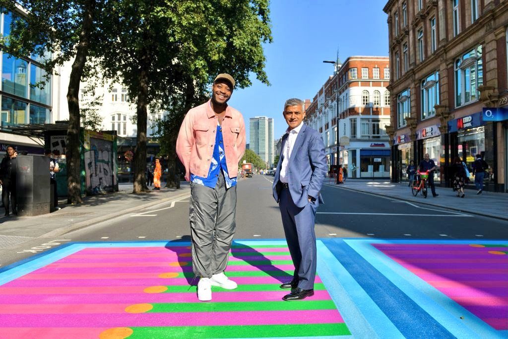Mr Khan was among those posing at the crossing near Percy Street on Thursday, along with night czar Amy Lamé, photographer Rankin and Mr Ilori as the new crossings were unveiled.