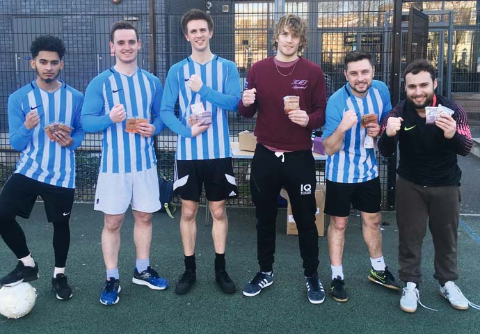 Robbie Chapman with the footballers who took part in a special five-a-side football tournament to win tickets for his fight at the York Hall this weekend