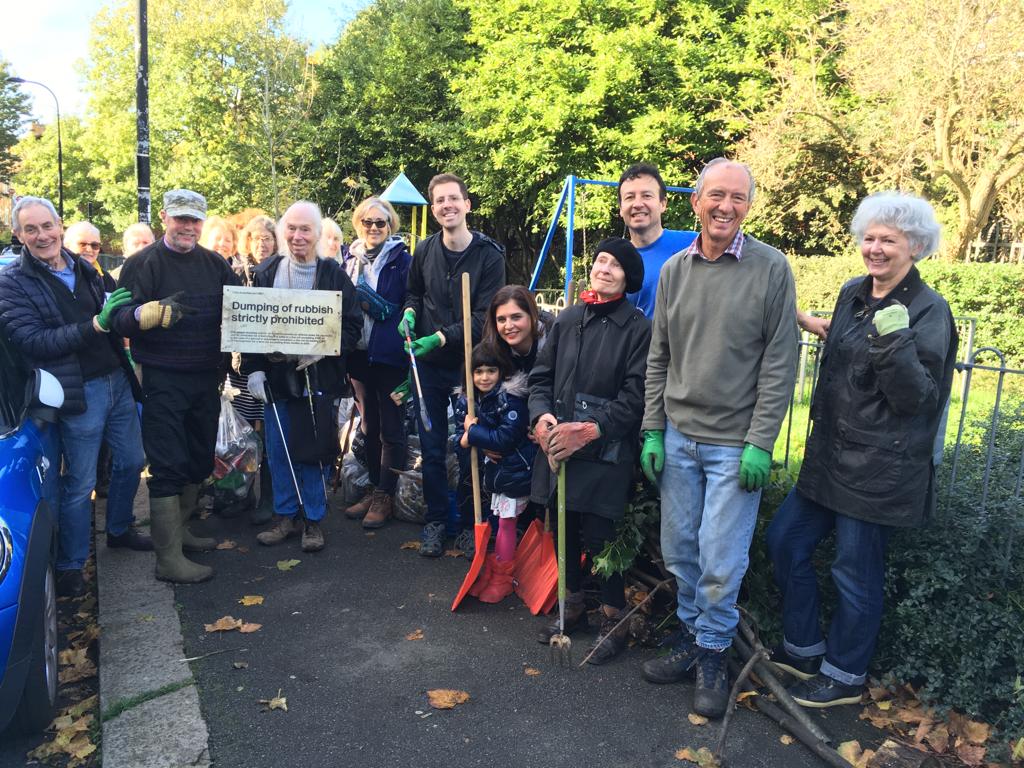 More than 40 members of the Combined Residents Associations of South Hampstead (CRASH) bagged up the rubbish next to the children’s playground on Sunday morning. They used rakes and hoes to drag it through holes in the metal fence in Broadhurst Gardens.