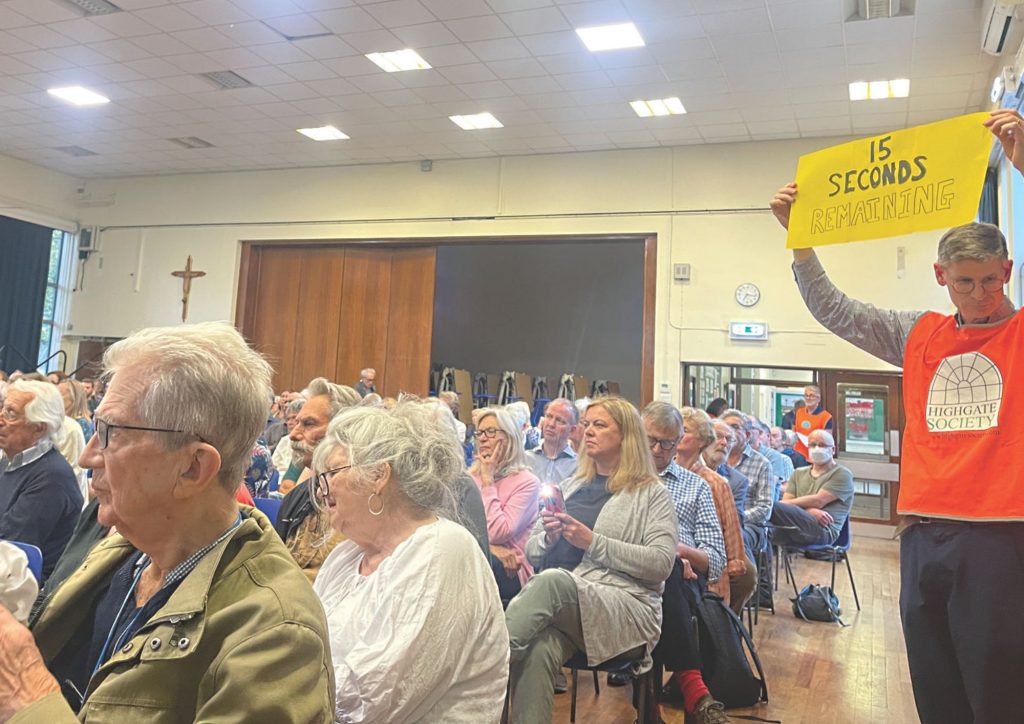 This wasn’t for a sold-out gig, but a public meeting organised by the Highgate Society to discuss the highly contentious Dartmouth Park low traffic neighbourhood (LTN) scheme. Nearly 250 people filled the hall – 100 more listened on Zoom – to tell councillors what they thought of the “healthy neighbourhood” trial.