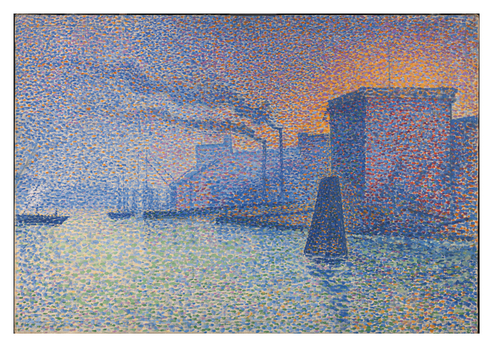 The empirical realism of Impressionism was challenged. Signac described the aim: “Divisionism is a method of securing the utmost luminosity, colour and harmony…” with pure colour and dots, or otherwise no mixing of colours and pointillism, in simple terms!