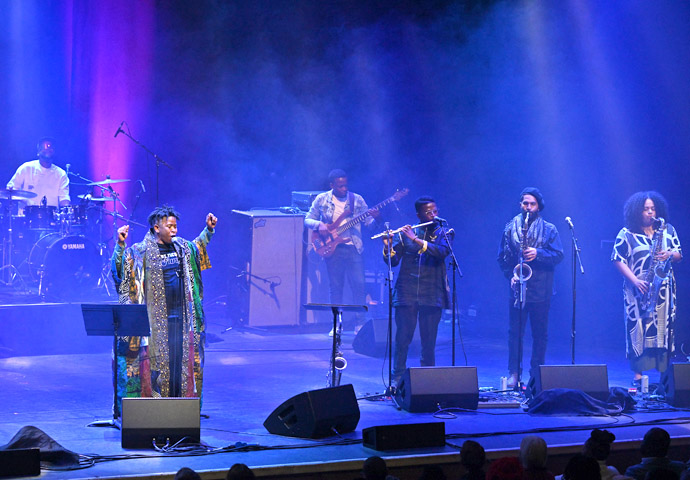 She was soon joined by singer Thandiswa Mazwai, a political protégé of trumpet giant and activist Hugh Masekela, whose powerful, heartfelt vocals filled every square inch of the hall.
