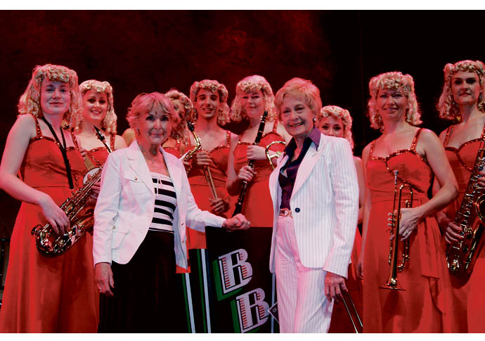 Joyce in 2011 dropping in on a musical about the Ivy Benson Band with one of the original band members