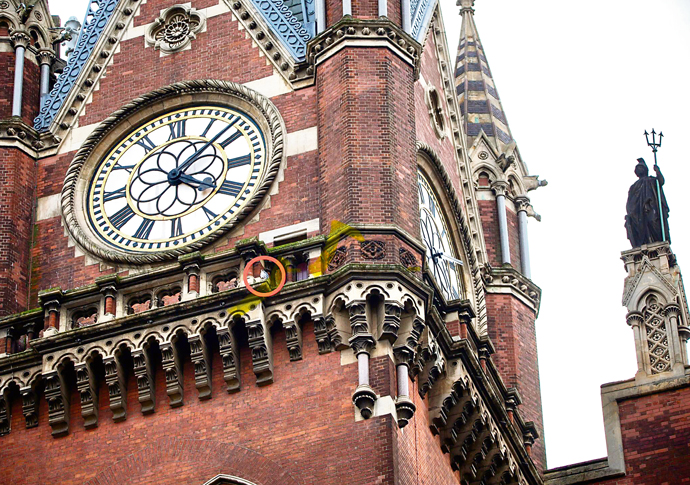The Clock Tower sits at the top of St Pancras Chambers, the modern name for what was built as the Midland Grand Hotel – a railway terminus hotel which was constructed at St Pancras by the Midland Railway from 1868 to 1876, with the hotel first opening in 1873.