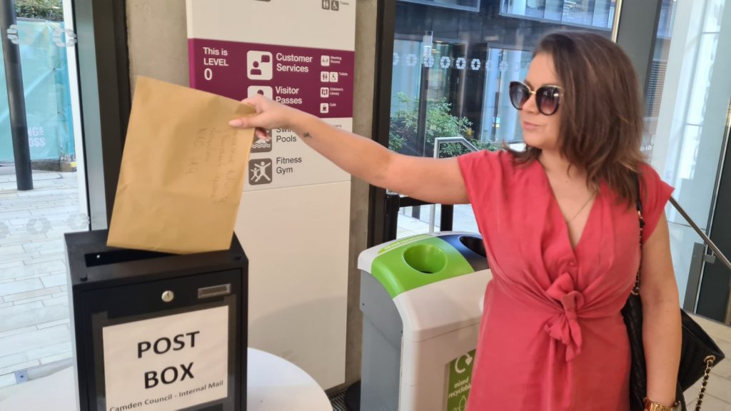 Marija Skauminaite, Cleide Brogio and Ken Pyne hand in the petition at Camden Council’s headquarters in King’s Cross