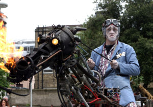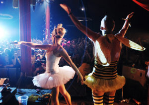 Roy and his friends decided to use their talents to build Lost Vagueness, dressing butch New Age men in ballgowns, creating sideshows and entertainments, and by doing so set in motion arguably one of the biggest cultural influences of the 2000s. It was an idea that has influenced Glastonbury’s Shangri-La area, organised by many of Roy’s co-conspirators, other festivals, to the renaissance of the Burlesque sensibility in clubs and fashion and the popularity of music such as Electro Swing and Ghetto Funk. All are in debt to Roy.
