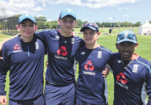 Middlesex team-mates Ethan Bamber, Luke Hollman, Jack Davies and Savin Perera on England Under-19s World Cup duty in New Zealand