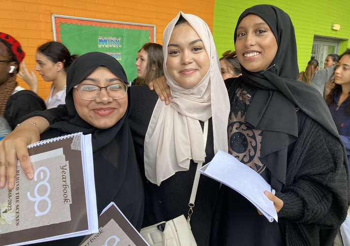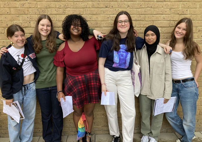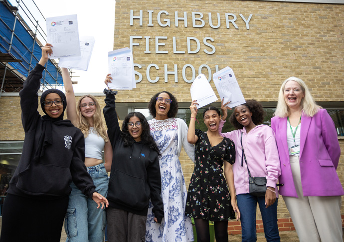Students from Elizabeth Garrett Anderson including Iris, third from right, who gained nine As