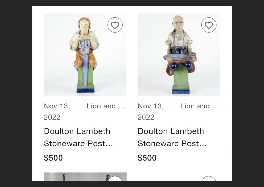 Auction listings for the finials