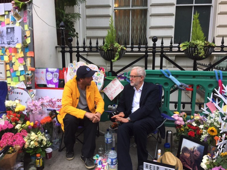 Hampstead and Kilburn MP Tulip Siddiq and Labour leader Jeremy Corbyn have visited the camp outside the embassy in Kensington.