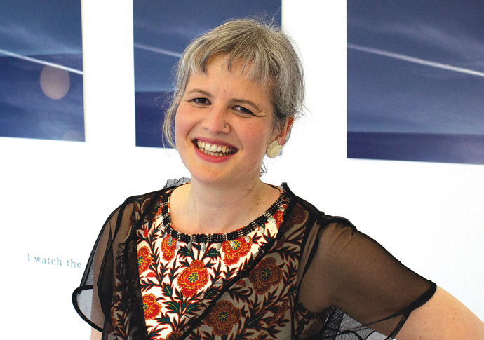 The quadriptych forms a time-lapse that demands slow looking: a serene blue sky is cut into planes by the soft white line of a contrail. A transparent sun is slowly obscured by a falling band of cloud. Like astronauts watching nightfall on a foreign planet, we see the familiar fading of the light anew. Titled The Sky Goes Down Over the Sun, this series points to Anna’s capacity to flip the world on its head. As she writes in a poem accompanying the exhibition: “Elements are reconfigured/ the world is reimagined/ possibilities manifest.”