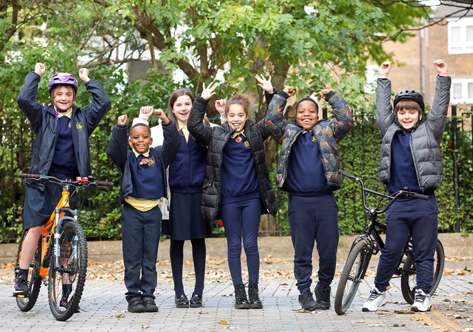 St Luke’s pupils on their bikes outside the school