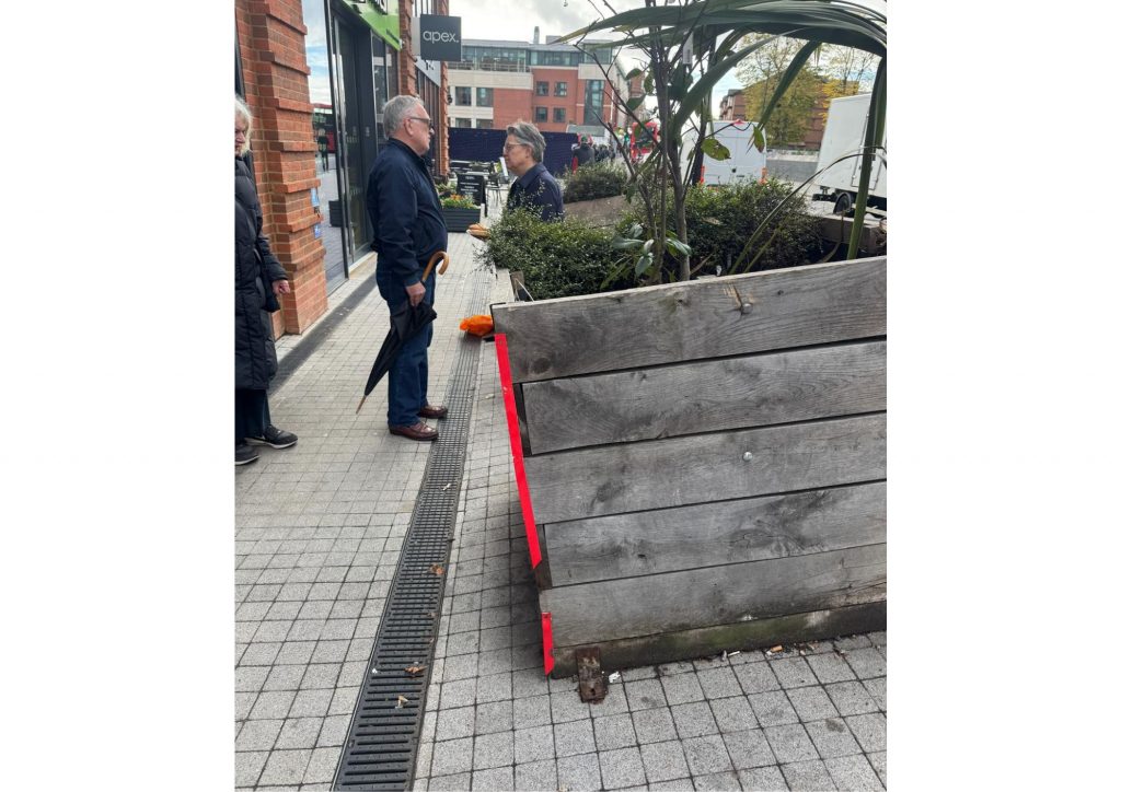 “For the first six months the council said that they were waiting for designs from the Highways Team. Then it went quiet,” she said. “The council’s response to my most recent enquiry is that under the sloping pavement, where the planters are, is some BT apparatus which has to be adjusted for the slope to be addressed. The council and BT have agreed a plan but there’s no date for implementation. The council has no powers to insist BT make the adjustments to any timeframe.”
