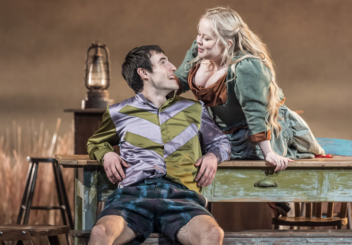Éanna Hardwicke as Christy Mahon and Nicola Coughlan as Pegeen Mike [Marc Brenner]