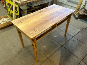 The table he made, which has been signed by his family and friends, will be on display in an exhibition at the Crowndale Centre in the coming weeks.