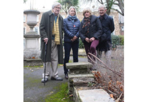 Members of the Canonbury Society surveying damage caused by the theft of valuable Yorkstone in Canonbury Square. From left: Jack Lambert, Susan Millership, David Stanton and Rosemary Brown