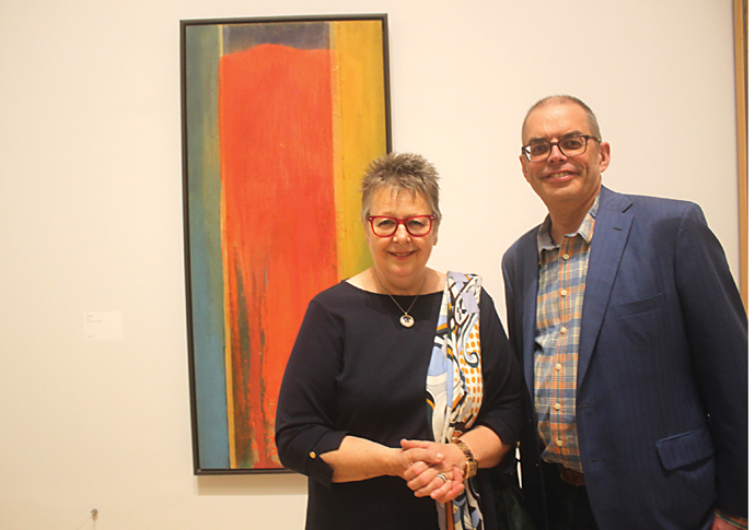 Sue and Jonathan Hitchin with the painting bought for her 60th birthday