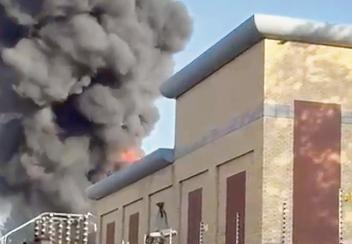 A transformer caught fire and briefly the flames spread to a neighbouring housing block.