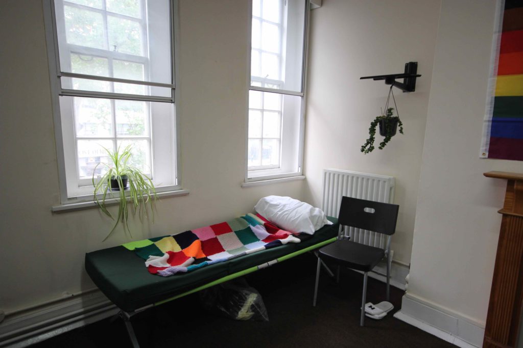The upper floors of the shelter feature bedrooms, a film room and a kitchen space with a lot of equipment donated from the recently closed Glass House shelter in Hornsey Road, which was run by campaign group Streets Kitchen.