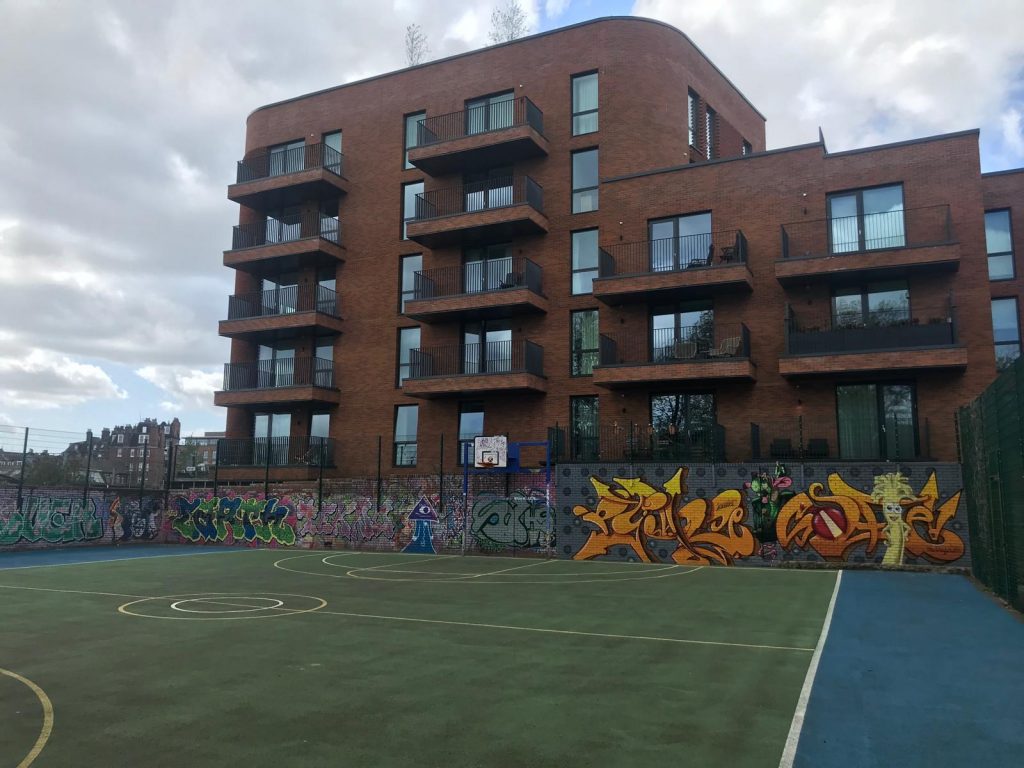 The new painting is on the right hand side of this photograph of the pitch in West Hampstead
