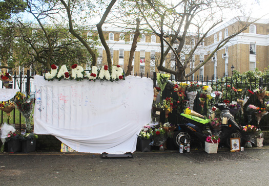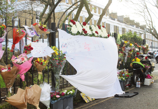 Friends and family gathered at a shrine outside Mr McPhillips’ home in Milner Square, just off Upper Street, on Wednesday, but were too upset to speak to the Tribune.