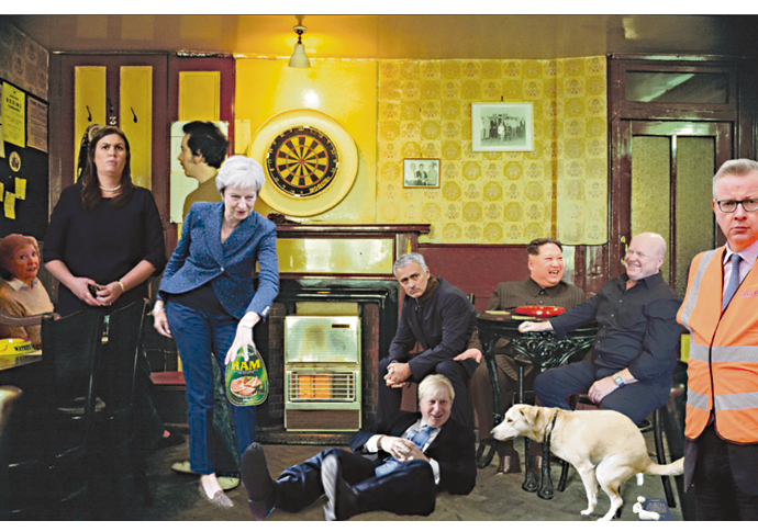 But the creator of Steve McFadden’s Cold War, a collection of photo-edited compositions featuring well-known faces made only his first public appearance on Monday evening as his work went on display at a bar in Fitzrovia.