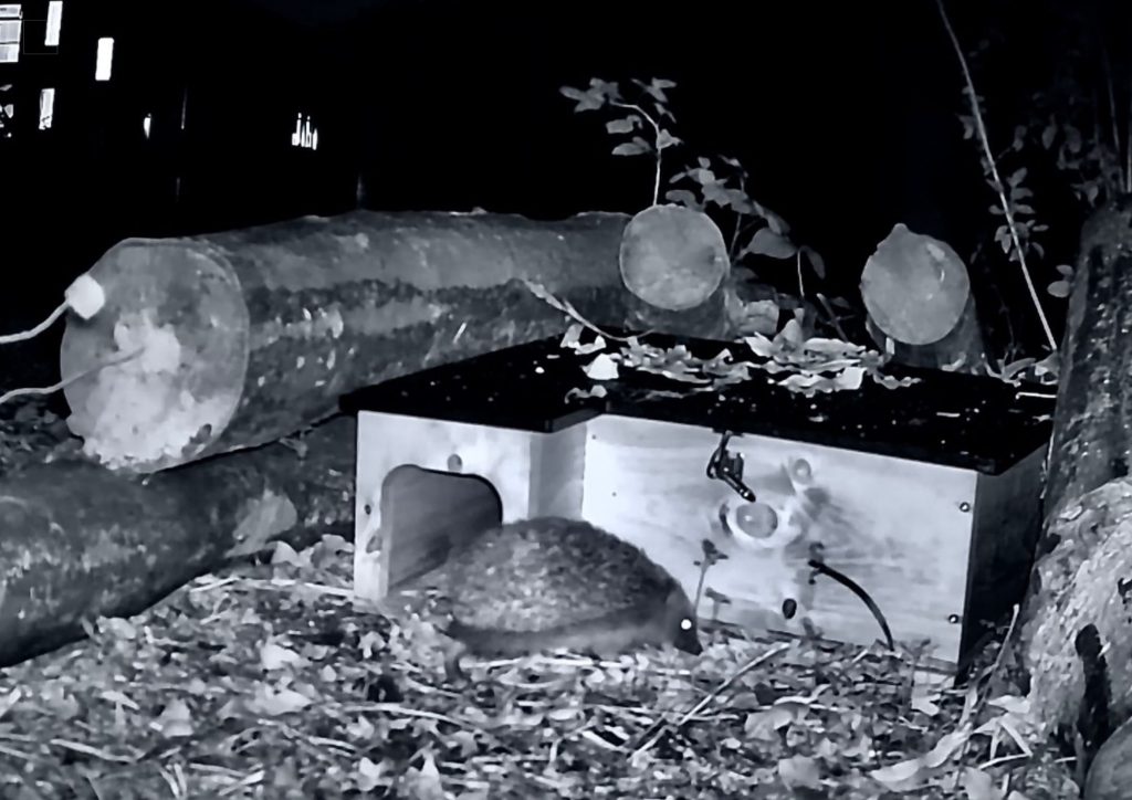 Growing Green set up cameras to see if the homes had residents – and to their delight, hedgehogs have moved in.