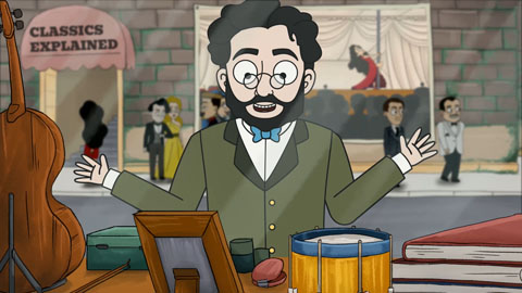 Levy does the Explaining himself, but not in anything like the manner of a straight-laced, face-to-camera lecture. It’s all done with animated cartoons that tell a story about a particular piece of music – like Ravel’s Bolero, Stravinsky’s Rite of Spring, or Beethoven’s 9th – in what he calls “wryly irreverent” terms. Which is to say, there’s no academic jargon, just fun facts hung on what’s essentially a human-interest narrative.