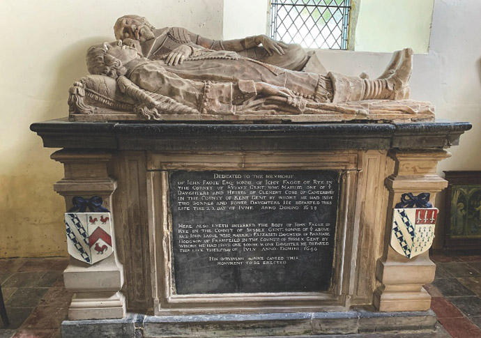 Set among trees, 7th-century St Eanswith’s Church in Brenzett is one of the smaller churches on Romney Marsh in Kent. The Lady Chapel, however, is home to the impressive tomb of John Fagge and his son, and it’s their effigies that were the inspiration for Edith Nesbit’s tale of terror in which a pair of marble knights are said to rise from their slabs on Christmas Eve.